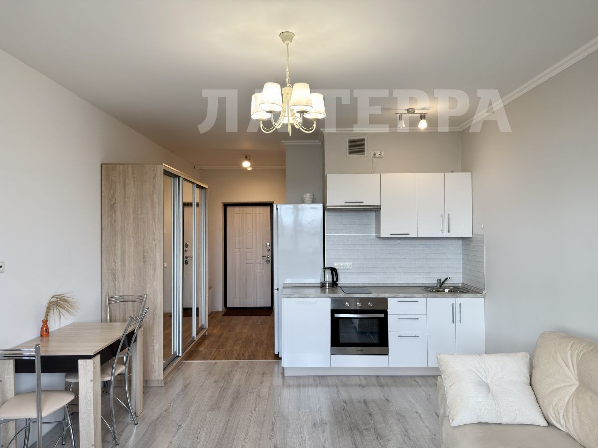 Продается уютная студия в современном жилом комплексе. Квартира расположена на последнем, 25-м этаже, что обеспечивает великолепный вид из окон и отсутствие соседей сверху. Общая площадь квартиры составляет 31.9 кв.м (29.5 кв. м. без учета балкона), из которых жилая площадь — 20.9 кв. м.
